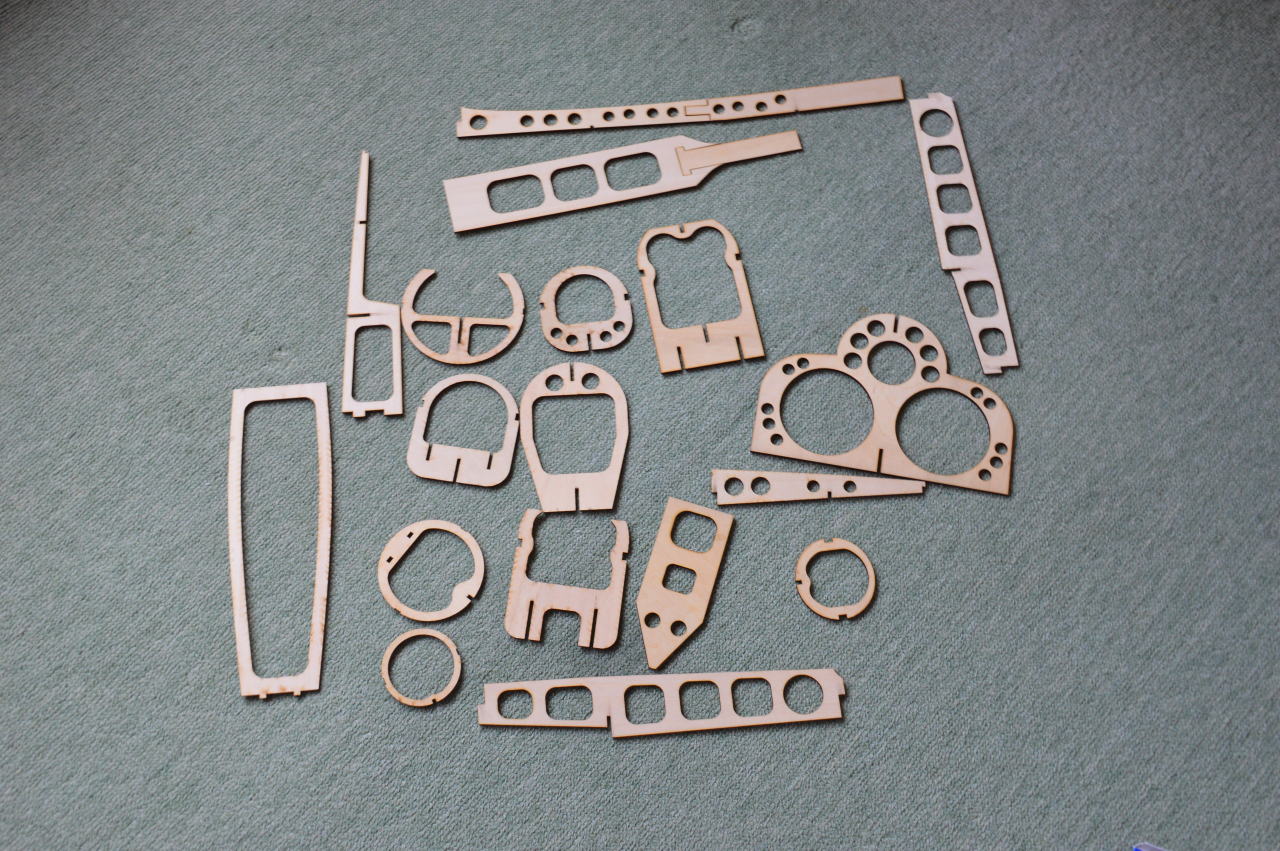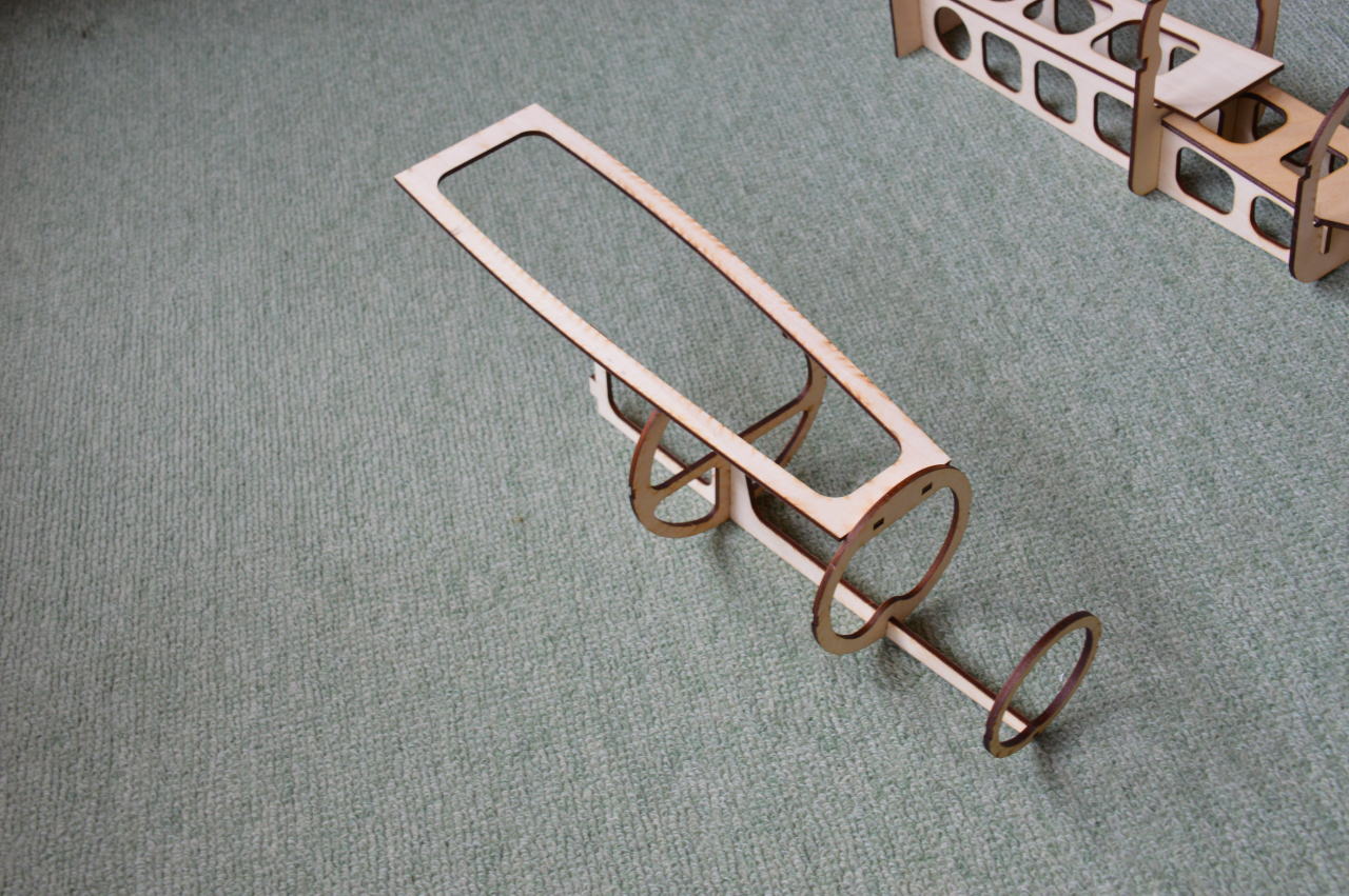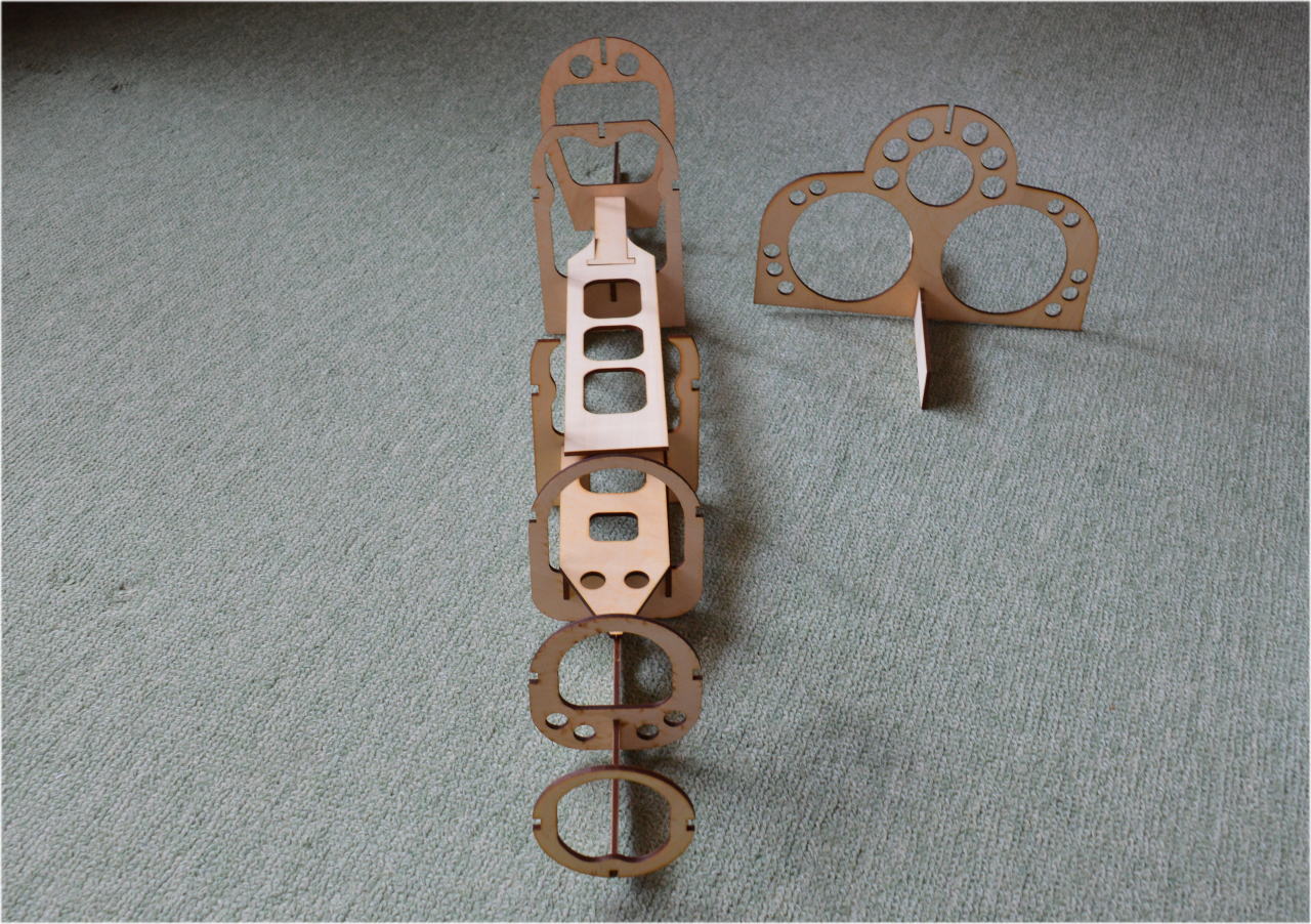 CADデータはべニアの板厚称呼3mmですが、前回の実測値2.85mm辺りでスロット部は設計、それにレーザー幅代マイナス0.1(両側で)描きましたが、これが大当たり職人さん以上の精度で殆ど軽い圧入程度で、その嵌め込みだけでもほぼ機軸が出そう。