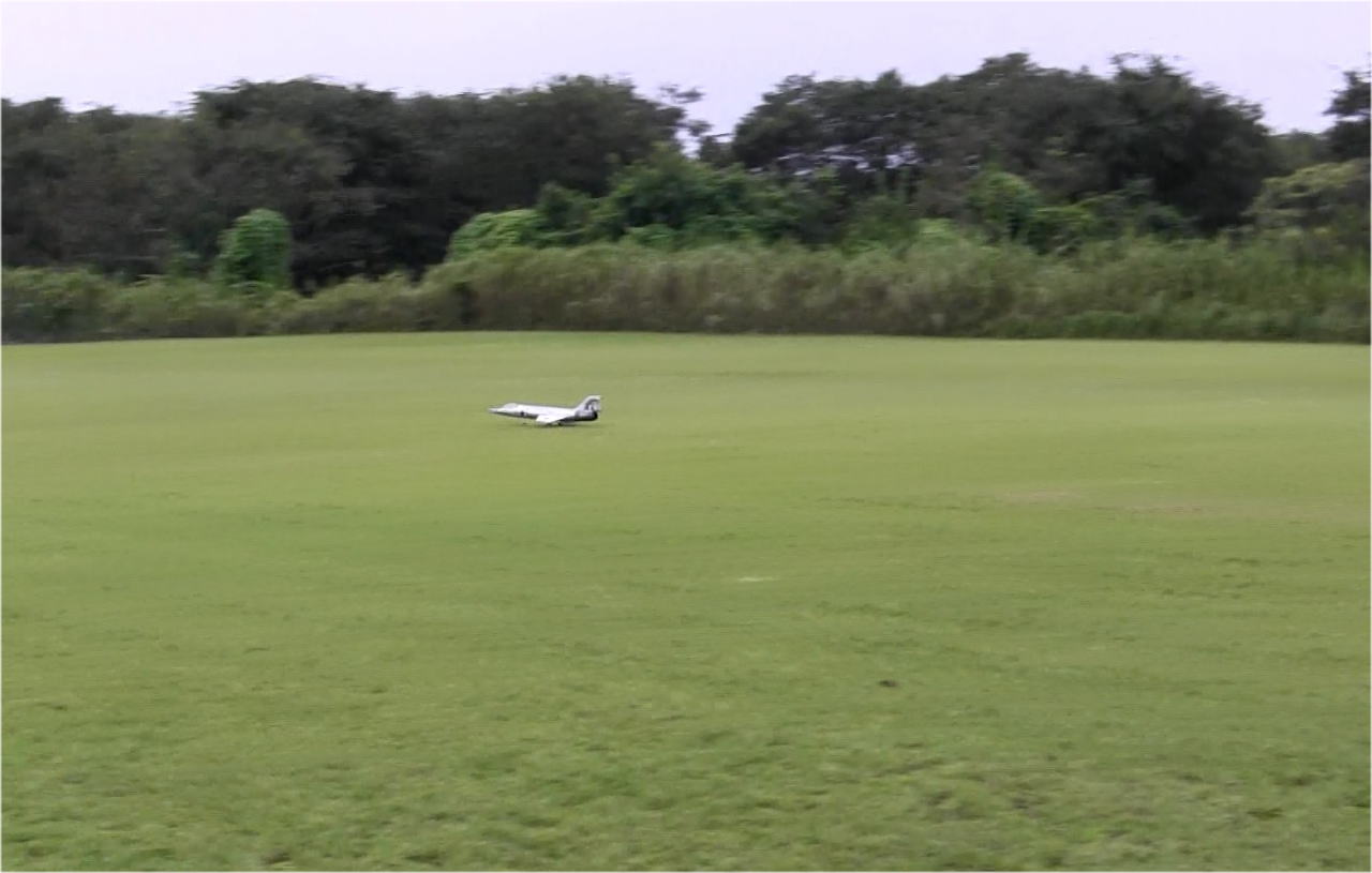 (傾き)を見失いあっという間に頭から墜落、わずか20秒の初飛行に終わっちゃいました、やはりkataさんの仰る通り翼端チップで認識しやすくしないと・・・